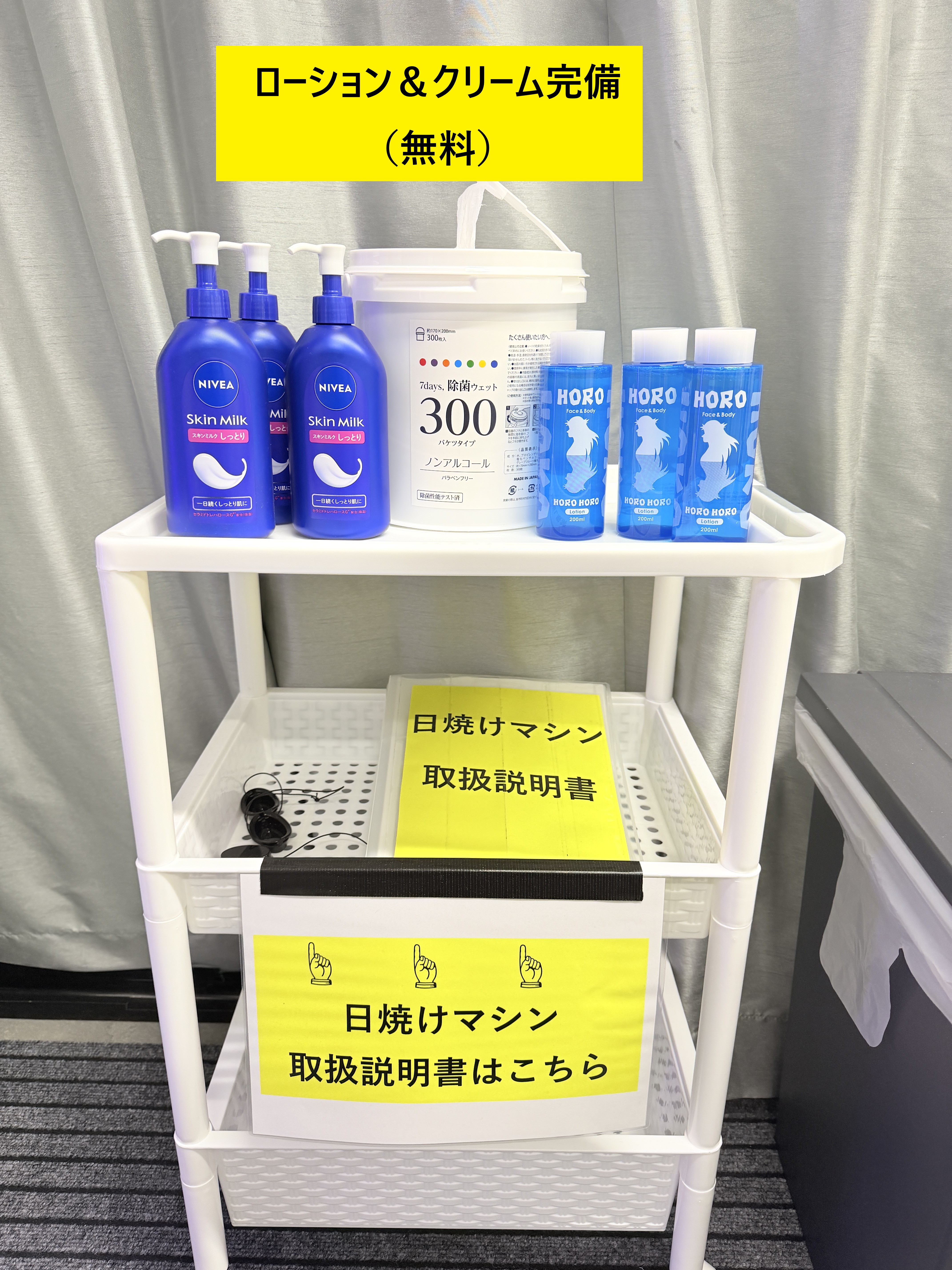 当サロンでは衛生面・清掃面の観点から日焼けオイルの使用を禁止しております。