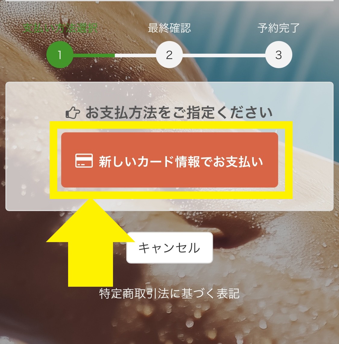 次に、ご新規の方は「新しいカード情報でお支払い」を選択してください。※メンバー登録をされると次回から入力の手間が省けます。
