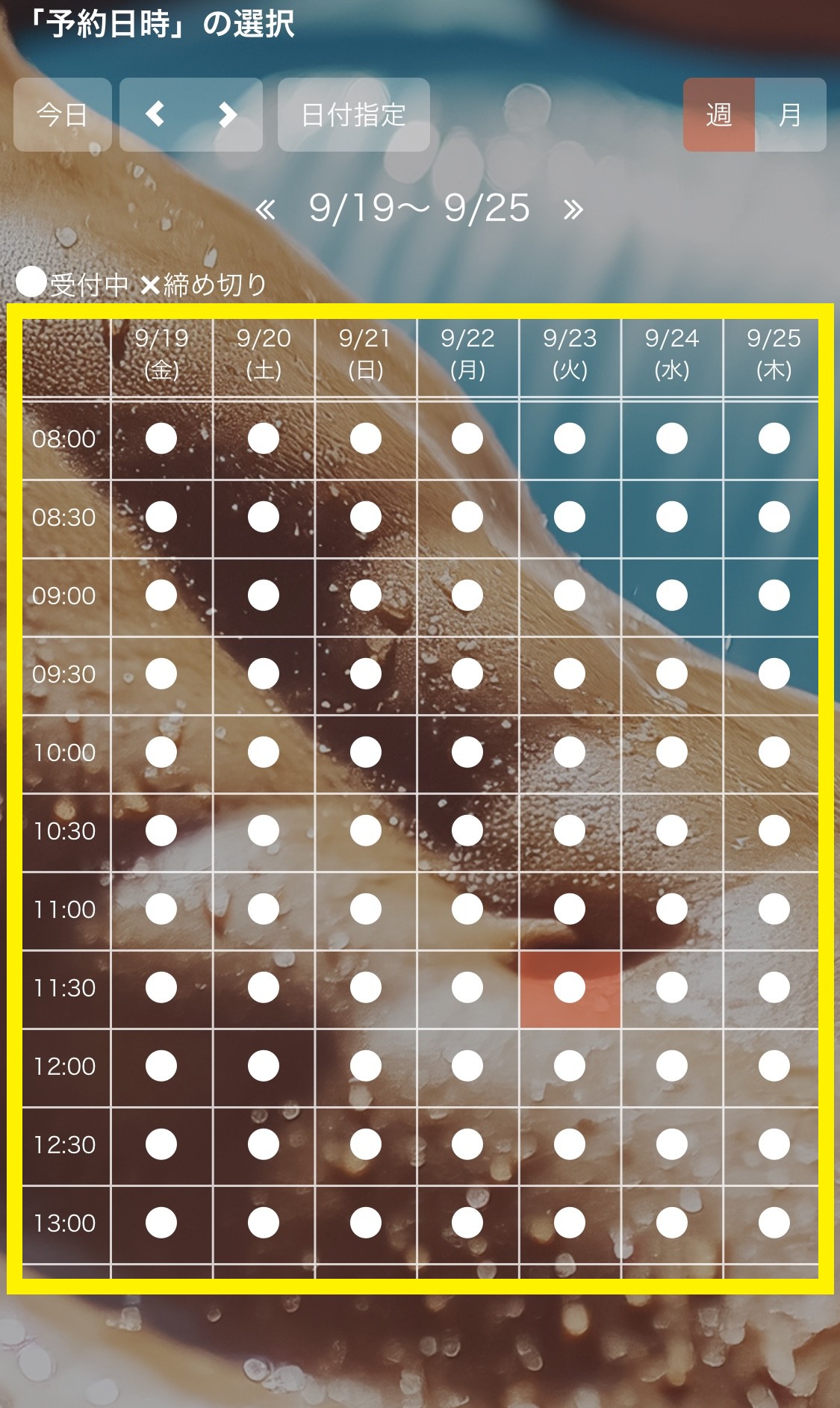 次に、「ご利用したい日時」を選択してください。例えば、〇月〇日の10時を選択した場合は、10時~10時30分のご利用となります。くれぐれもお日にちとご利用開始時間をお間違いないようにお選びください。