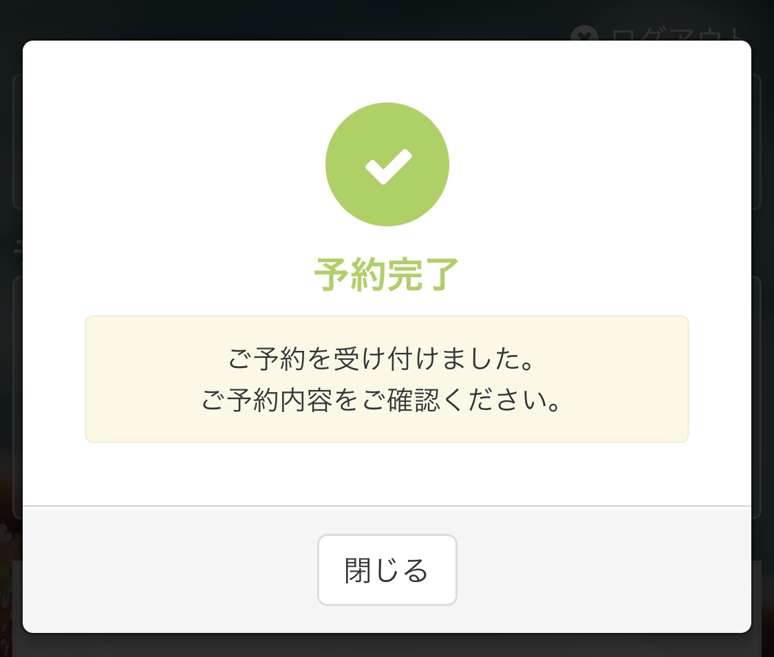 これで予約が完了いたしました。予約が完了すると次の写真の画面になります。
