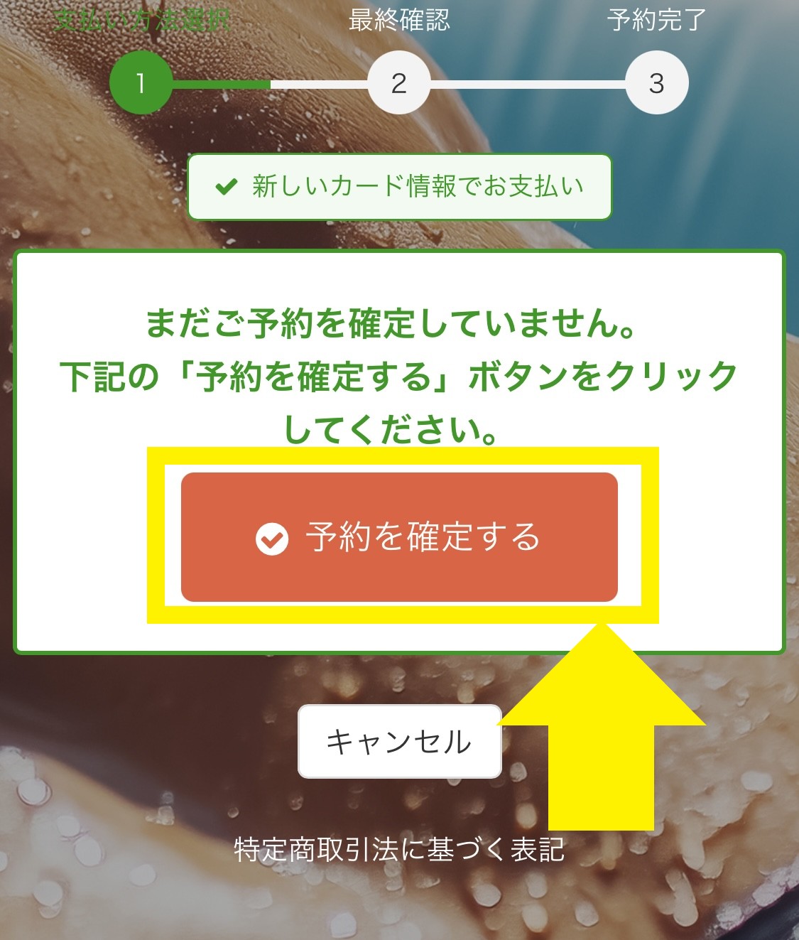 クレジットカード情報を入力しましたら、「予約を確定する」を選択してください。