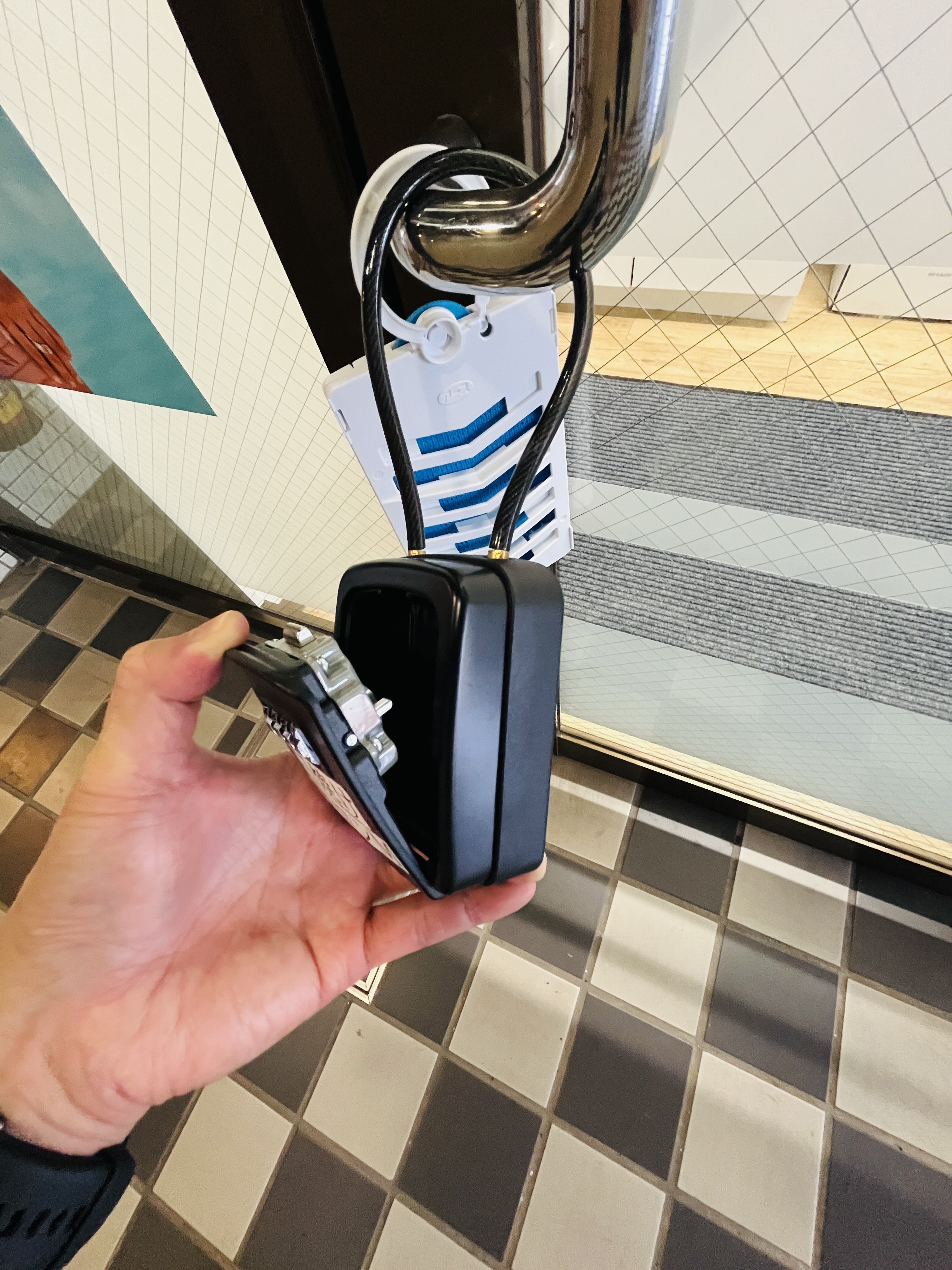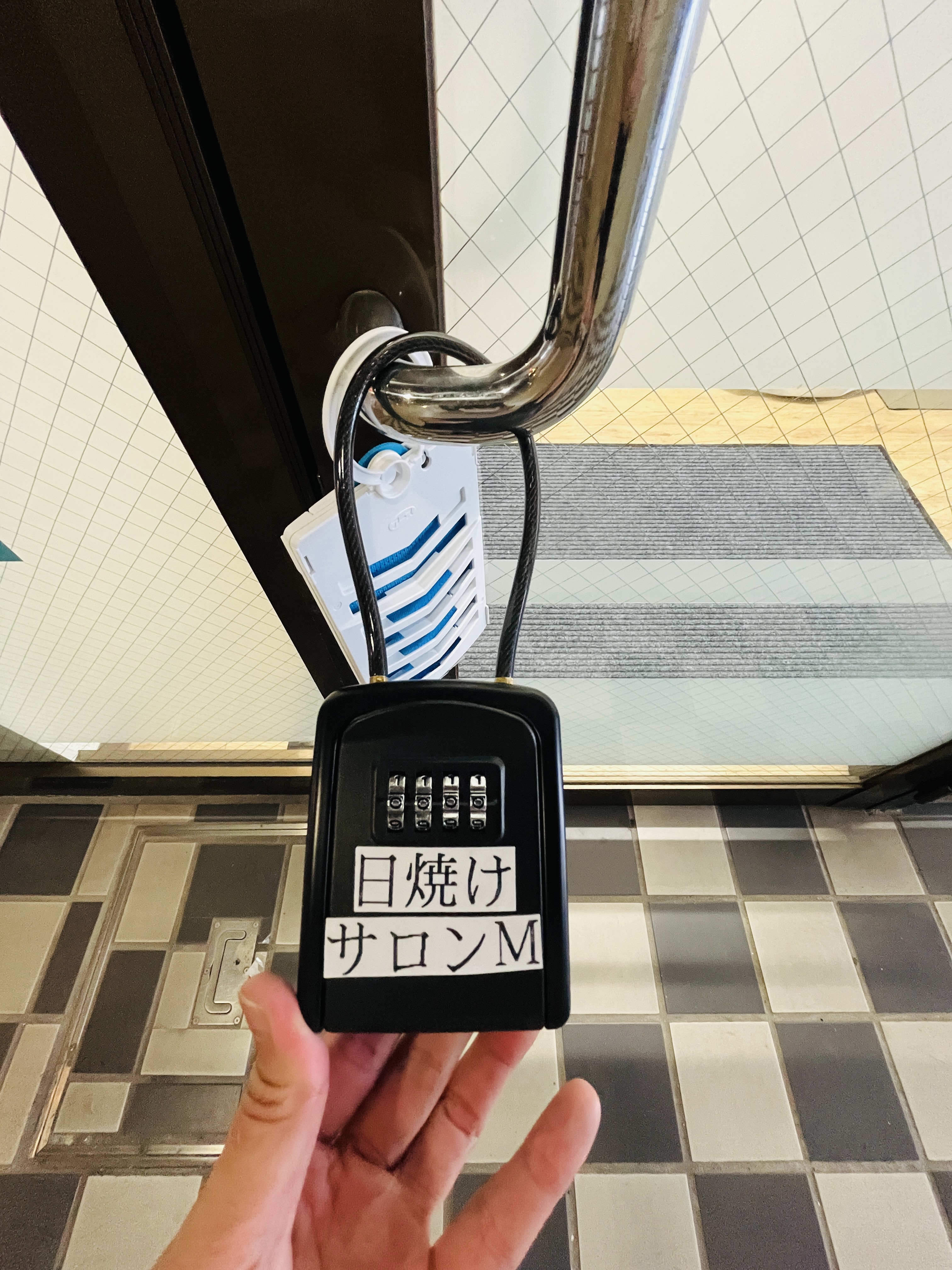 キーボックスの中に鍵が入っていますので、鍵をとってお店にお入りください。なお、お帰りの際は、鍵をキーボックスにお戻しいただき、番号を「0000」にしてお帰りください。